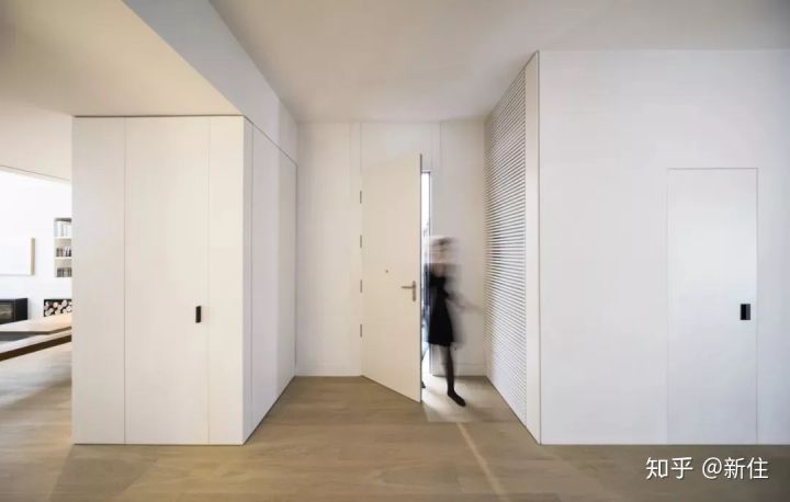 其實就是為了整體的協(xié)調,遮蓋玄關很小的一個電箱,花了大價錢把整面墻鋪上裝飾板,可謂是把極簡做到了極奢。